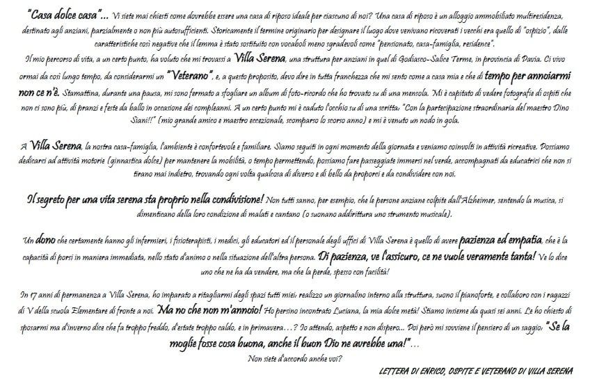 La Cooperativa si costituisce con una base sociale fortemente motivata e convinta convinta della validità dello spirito e delle regole della cooperazione, oltre che della validità del progetto, che si propone di gestire il servizio di fisiokinesiterapia presso alcune R.S.A. pubbliche e private nella zona, per arrivare all’attivazione di gestioni complete di servizi integrati in R.S.A., già nel corso del medesimo anno, ed alla gestione diretta della R.S.A. “Villa Serena” dal 01/01/2004.